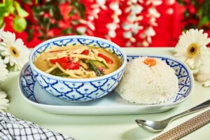 Kyllingsuppe med rik smak av kokosmelk, sjampinjong, tomat, koriander, chili og lime. Allergener: Fisk (fiskesaus) (glutenfri) | Takeaway