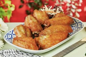 Klassiske hjemmelagde vårruller med kylling, kål, gulrot og risnudler. Serveres med sweet chilisaus.